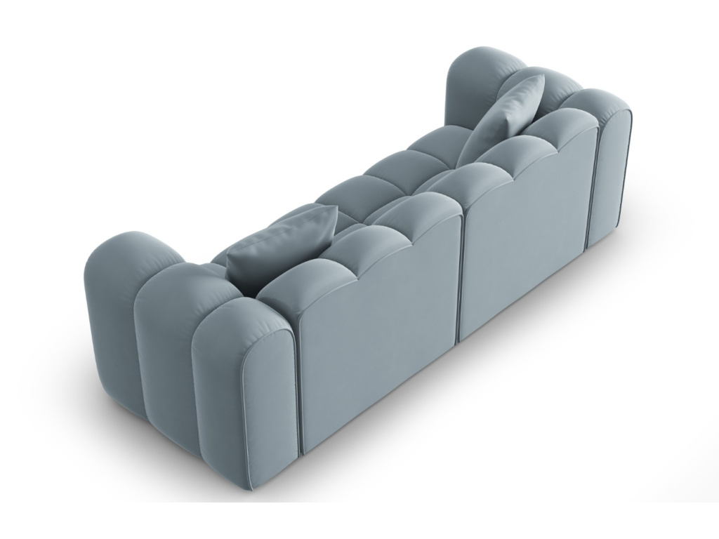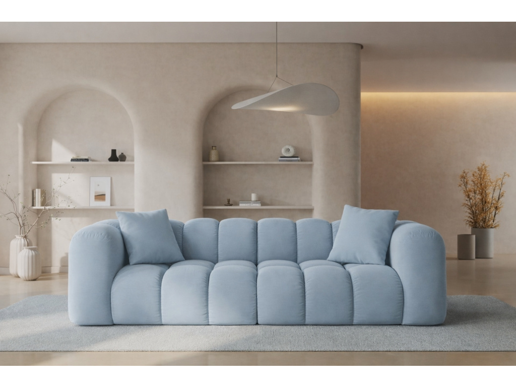 Velkolepá třímístná pohovka Halley od značky Windsor & Co zaujme charakteristickým prošíváním. Bublinkové sedáky, opěradla a područky vybízejí k nespoutané relaxaci. Pohovka je čalouněná sametovou látkou s jemným leskem ve světle modrém provedení, která je měkká a velice příjemná na dotek. Tkanina je velmi odolná proti oděru a absorpci tekutin, čímž zaručí dlouhodobé používání bez známek opotřebení. Látka navíc prošla cigaretovým testem, tudíž je odolná proti doutnání a vznícení. Tento skvostný kus nábytku nejen zaujme na první pohled, ale především zútulní váš interiér ve skandinávském nebo glamour stylu. Příjemným bonusem jsou elegantní polštářky, které doladí pohovku k dokonalosti. Pro sjednocení vašeho sedacího koutu doporučujeme pohovku doplnit také o podnožkou ze stejnojmenné série. Všechny produkty nabízíme v několika barvách. Odpočiňte si a relaxujte ve stylu!