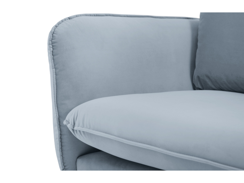 Pohovka Vienna od Cosmopolitan Design je poctou nadčasové eleganci, smyslu pro detail a dokonale vyváženým proporcím. Jemně tvarované opěrky, měkké polštáře a ladná silueta jí propůjčují lehkost, která zaujme na první pohled. Kontrastní černě lakovaná kovová podnož dodává celku vizuální vzdušnost a současně zajišťuje stabilitu. Luxusní sametový potah je nejen krásný na pohled, ale i příjemný na dotek – hladký, hebký a přirozeně elegantní. Na výběr je široká paleta pečlivě vybraných odstínů, které se snadno sladí s jemně minimalistickým interiérem i s odvážnějšími koncepty. Vienna vždy zapadne s lehkostí a zároveň dodá prostoru výraz. A protože každý domov má jiné potřeby, kolekce Vienna je k dispozici v několika velikostech – od kompaktních modelů ideálních do menších bytů až po velkorysé pohovky, na které se vejde celá rodina i s chlupatým parťákem.