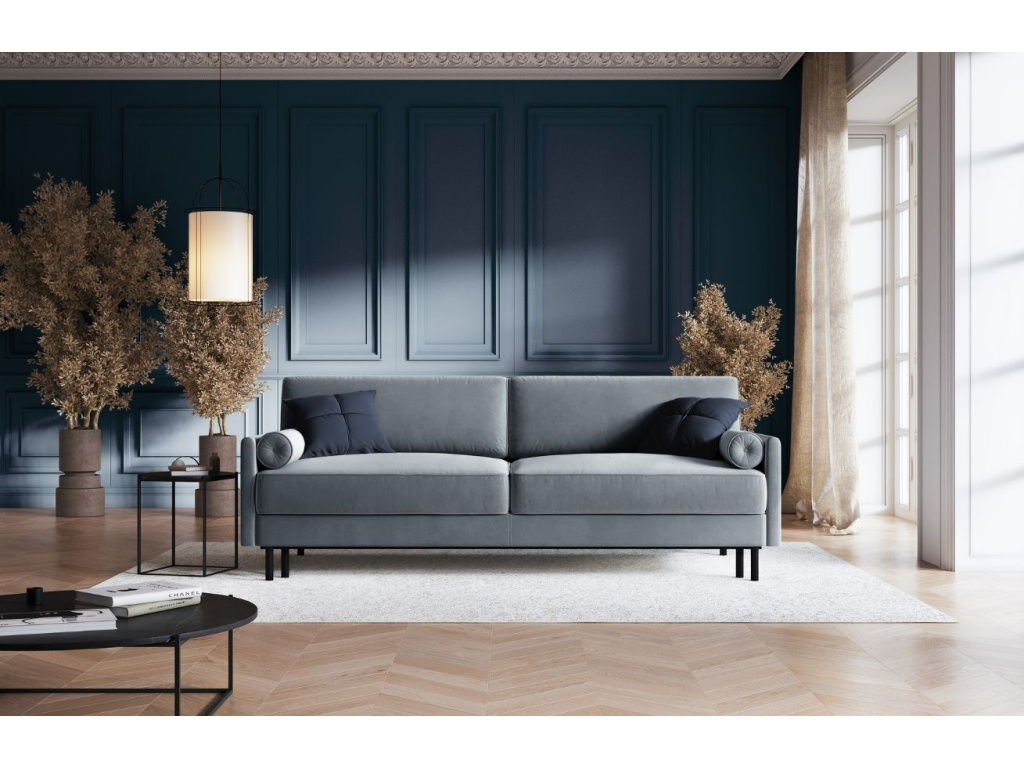 Trojmístnou pohovku Scott kdykoliv snadno proměníte v lůžko pro vaši nečekanou návštěvu. Pohovka se pyšní jednoduchým elegantním designem, který je umocněn vyšší štíhlou podnoží. Kvalitní sametové čalounění je odolné vůči vznícení a splňuje cigaretový test. Látka s jemným leskem, je navíc je dostupná v široké škále barev, takže si snadno zvolíte tu, která se do vašeho obývacího pokoje bude nejlépe hodit. Dopřejte vašemu obývacímu pokoji tento stylový kousek a užívejte si v jeho pohodlném náručí rodinné filmové večery i chvilky relaxu s knížkou v ruce!