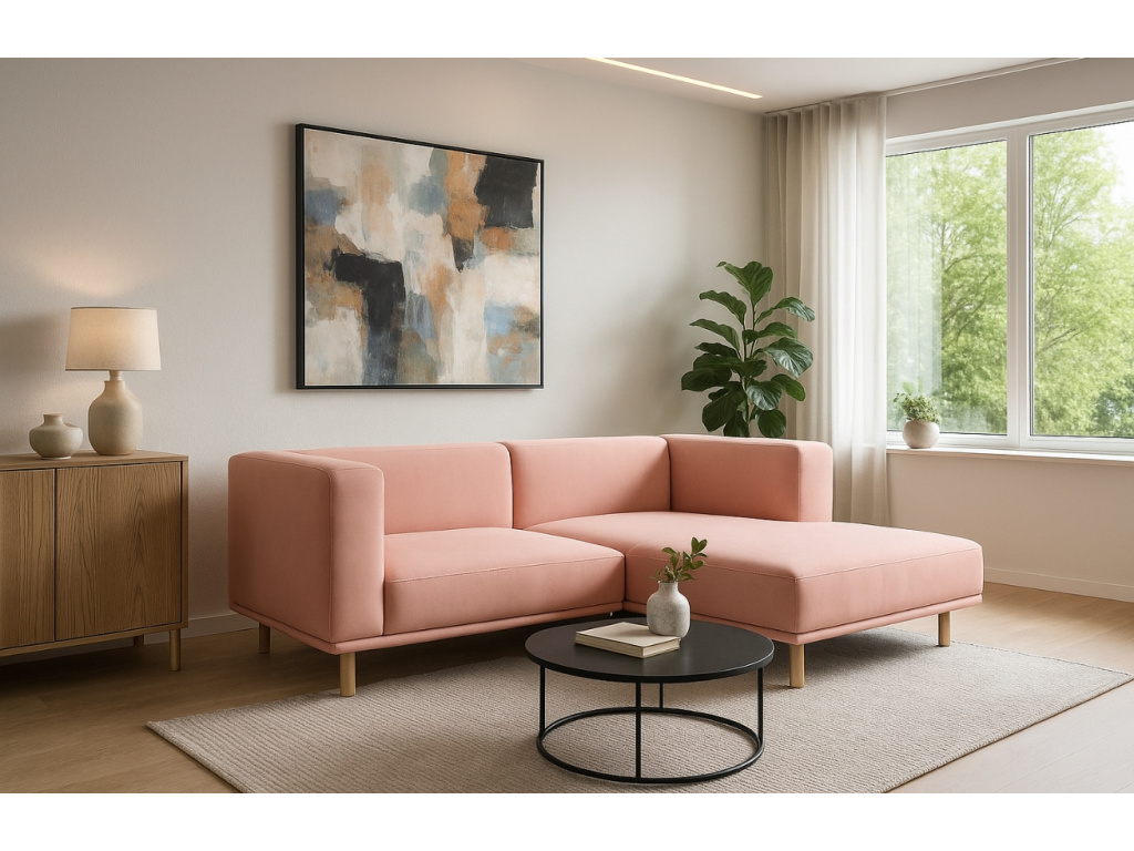 Dopřejte si odpočinek, který si zasloužíte! Rohová pohovka Kukumo od značky Ame Yens kombinuje styl 70. let s japonským a skandinávským designem. O vaše maximální pohodlí se postará její jemně lesklé sametové čalounění ve světle růžovém provedení, které je nejen hebké a příjemné na dotek, ale také vysoce odolné proti oděru a absorpci tekutin. To znamená, že si její krásný vzhled i pohodlí užijete po dlouhá léta bez obav ze známek opotřebení. Celkový design pohovky doplňuje podnož z přírodního světlého dřeva. Doplnit ji můžete o dvoumístnou pohovku ze stejnojmenné kolekce a vytvořit tak harmonický celek pro váš obývací pokoj. Objevte kouzlo dokonalého pohodlí – pohovka Kukumo se stane vaším oblíbeným místem pro relaxaci!