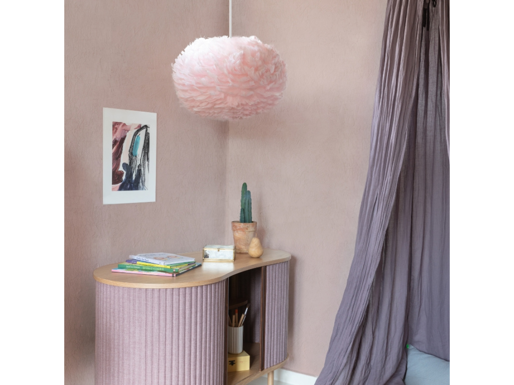 Podívám seSvětle růžové závěsné stínidlo Eos z pravých husích per 45 cm