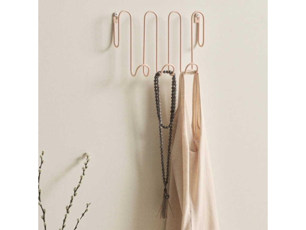 ProhlédnoutSvětle růžový kovový nástěnný věšák TURNS 40 cm