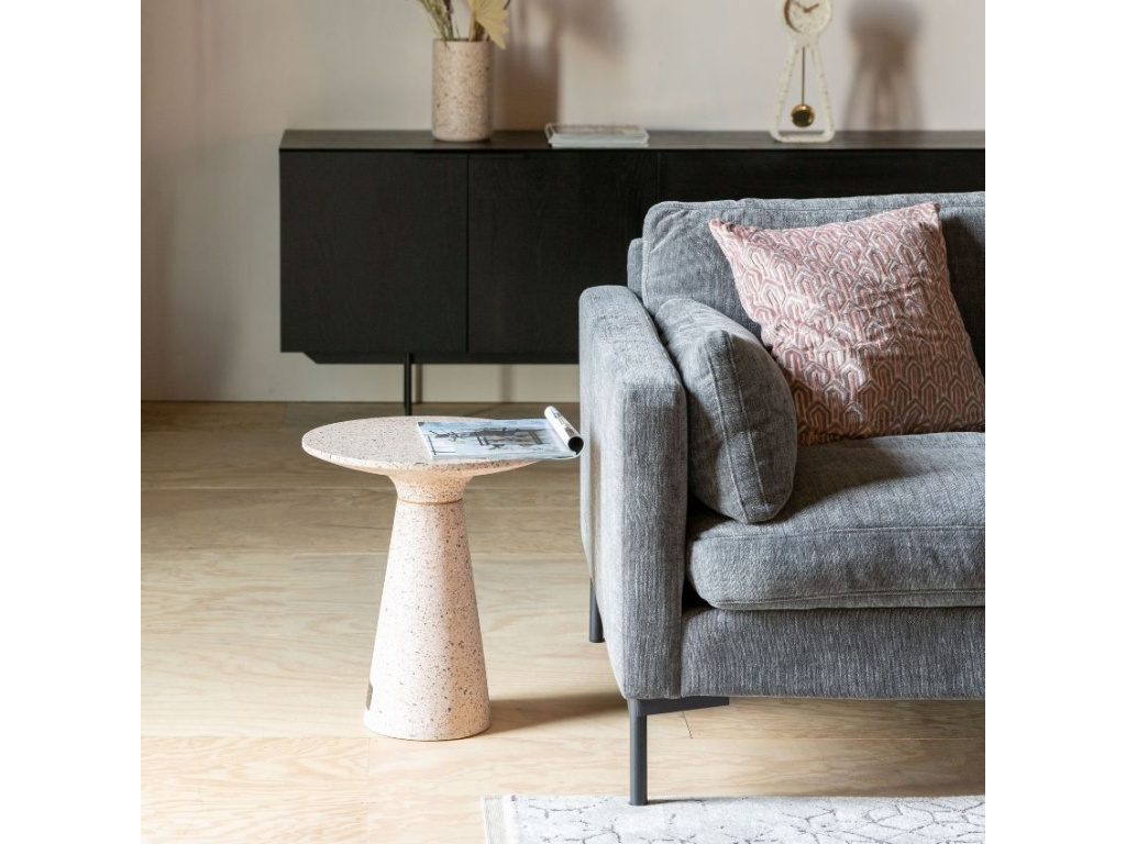 Stylový odkládací stolek Victoria je stolek s charakterem. Terrazzo je spojením kousků mramoru a betonu a tím vzniká atraktivní kontrast, který s sebou přináší osobitost a unikátní design. Jemná kombinace barevných kousku na růžovém podkladu dodává stolku hravost. Stolek Zuiver Victoria skvěle doladí moderní interiéry.