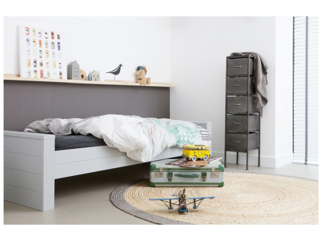 Jednolůžková postel Koben je vyrobena z masivního borovicového dřeva a lakovaná v univerzálním, nyní velmi oblíbeném, šedém odstínu. Tato krásná masivní postel je vhodná pro matraci o velikosti 90x200 cm a je možno ji doplnit o výsuvný úložný prostor, který lze použít také jako box pro druhou matraci.