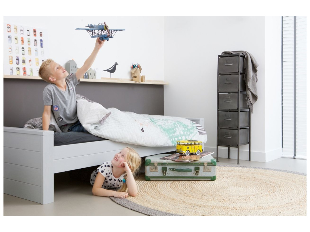 Jednolůžková postel Koben je vyrobena z masivního borovicového dřeva a lakovaná v univerzálním, nyní velmi oblíbeném, šedém odstínu. Tato krásná masivní postel je vhodná pro matraci o velikosti 90x200 cm a je možno ji doplnit o výsuvný úložný prostor, který lze použít také jako box pro druhou matraci.
