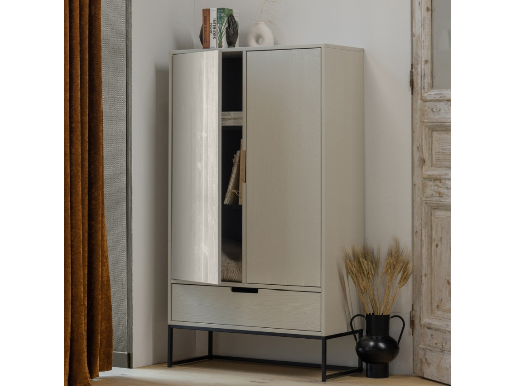 Šatní skříň Frax od Hoorns je osobitým kusem nábytku, vyrobený z borovicového dřeva v elegantní šedé barvě s kovovou podnoží. Skříň nabízí velký úložný prostor a díky jejímu designu si ji zamilují všichni, kteří ocení jednoduchost, čistotu provedení a také použití vysoce kvalitních materiálů. Minimalismus skříně Frax bude nejlépe vynikat v jednoduše a vzdušně zařízeném interiéru, kterému dodá nadčasový styl.