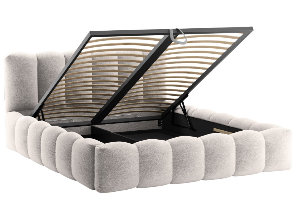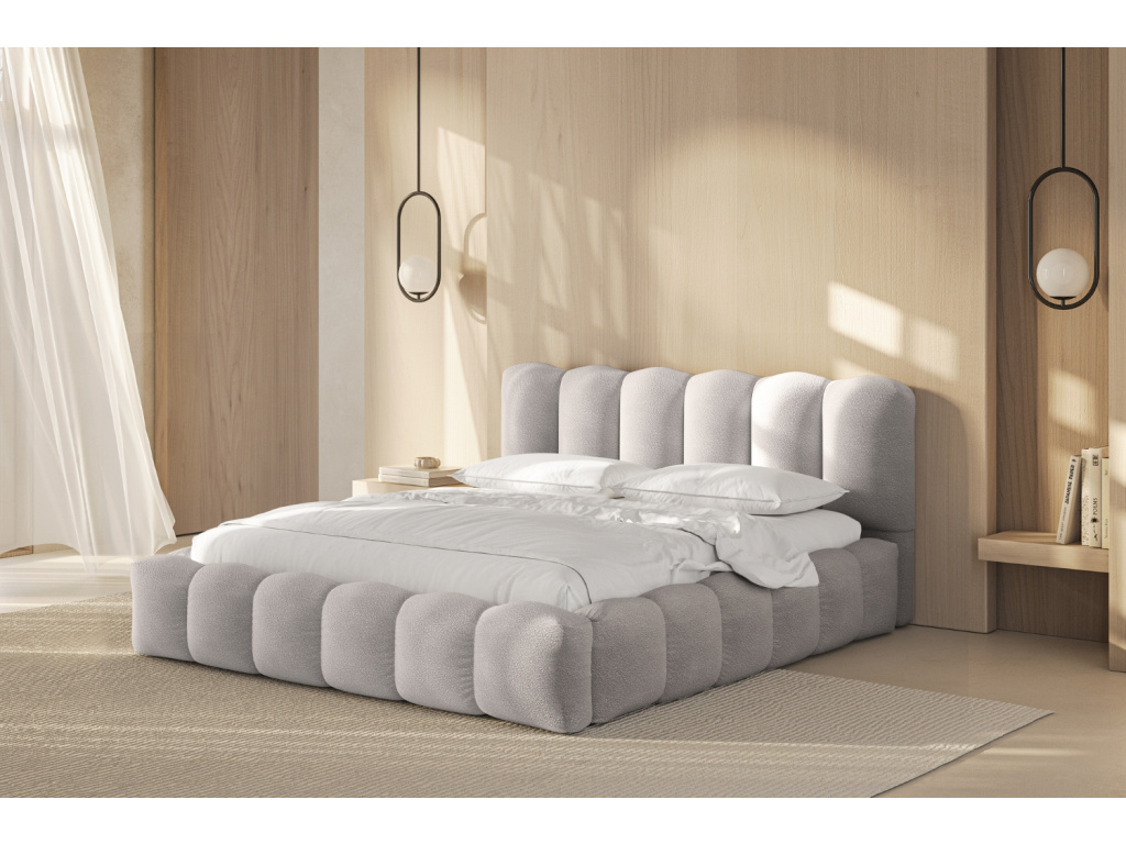 To chciSvětle šedá bouclé dvoulůžková postel Lupine 180 x 200 cm s úložným prostorem