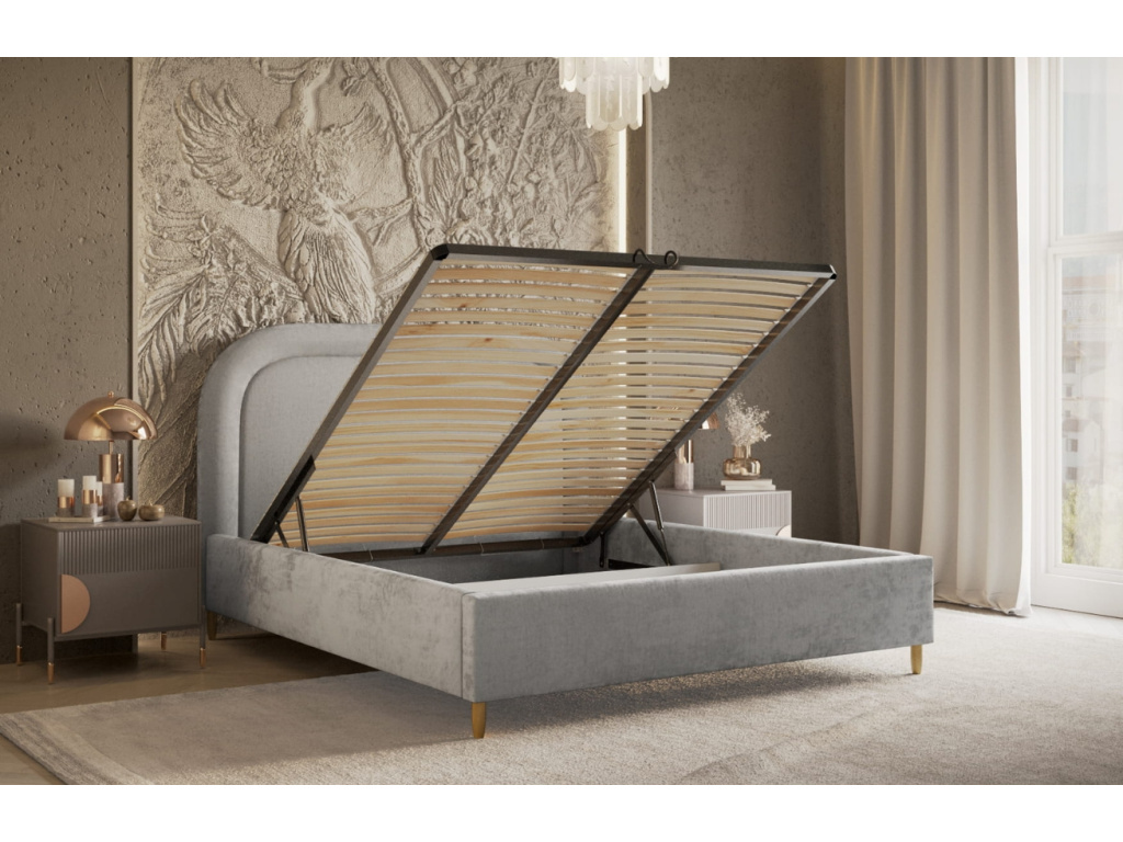 Více infoSvětle šedá čalouněná dvoulůžková postel MIJA 180 x 200 cm s úložným prostorem