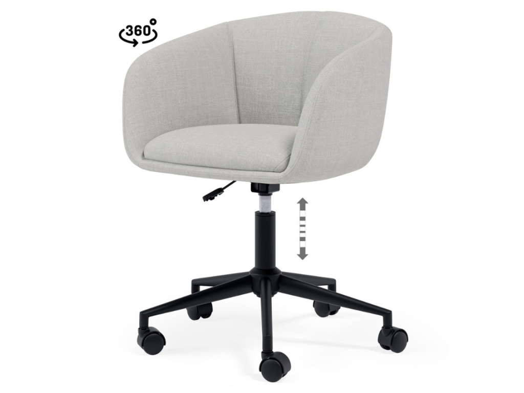 Hladká oblouková opěrka a měkké polstrování konferenční židle Arizona vytvářejí příjemné sezení pro každodenní práci i delší schůzky. Stabilní pětiramenná kovová podnož s kolečky a funkcí 360° otáčení zajišťuje snadnou mobilitu, výšku sedu lze navíc jednoduše nastavit. Jemný odstín šedé se snadno kombinuje s různými interiérovými styly, od minimalistických po elegantní kancelářské prostory. Židle Arizona je v nabídce ve světle šedé, tmavě šedé a béžové variantě.