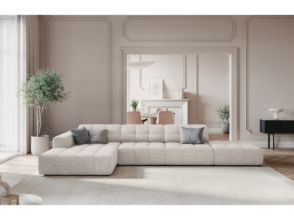 Rohovou pohovku Chicago od značky Cosmopolitan Design si zamilujete! O vaše maximální pohodlí se postará její žinylkové čalounění ve světle šedém odstínu, které je odolné proti oděru a zároveň příjemné na dotek. Probarvené nitě vytvářejí poutavou 3D strukturu se stínovým a lesklým efektem. Pohovka Chicago svými proporcemi nabídne prostorné a pohodlné místo až pro 5 osob. Pro sjednocení vašeho sedacího koutu doporučujeme pohovku doplnit také stylovým křeslem nebo podnožkou ze stejnojmenné série. Všechny produkty nabízíme v několika barvách. Odpočiňte si a relaxujte ve stylu!