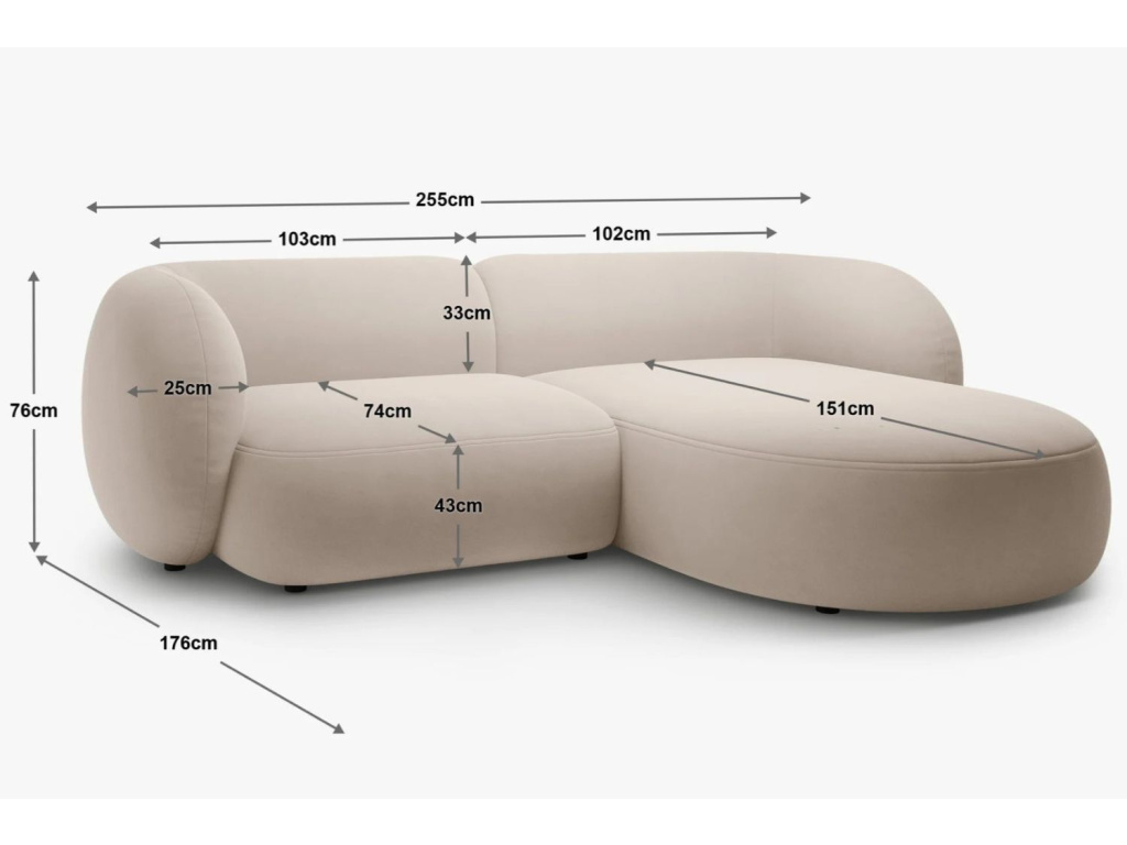 Rohová dvoumístná pohovka Kate přináší dokonalou rovnováhu mezi designem a pohodlím. Její zaoblené linie, velkorysé sezení a hladké čalounění vytvářejí pocit útulnosti i luxusu, který se hodí do moderních, minimalistických i klasicky laděných interiérů. Středně měkké a pružné sezení zajišťuje dlouhodobý komfort, zatímco elegantní silueta s nádechem retro stylu působí lehce a přirozeně. Čalounění z prémiové strukturální látky Puente dodává pohovce jedinečný vzhled i charakter. Tkanina z několika typů přízí vytváří bohatou, vícevrstvou strukturu, která zaujme na první pohled. Pohovka je dostupná v mnoha barevných variantách a dalších dvou typech čalounění, takže si ji snadno sladíte se svým stylem. Pokud pohovku doplníte o elegantní konferenční stolek, koberec nebo stojací lampu, ještě více zvýrazníte její tvar a strukturu. Pro ještě větší pohodlí ji nezapomeňte doplnit o polštáře či pléd. Pohovka Kate je ideální volbou pro ty, kteří hledají styl, pohodlí a nadčasovou eleganci v jednom kousku nábytku.