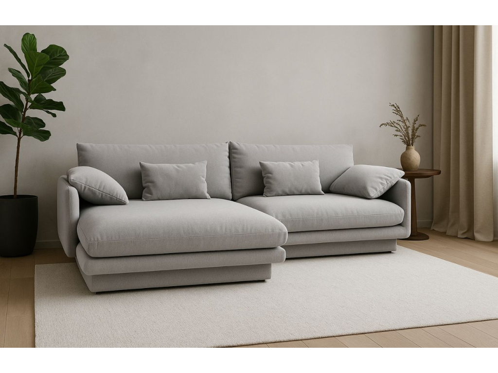 Rohová čtyřmístná pohovka Torino je elegantní a pohodlná volba pro každodenní relaxaci. Její nadčasový design spojuje klasickou siluetu s moderními proporcemi a měkkými liniemi. Výrazným prvkem jsou polstrované pohyblivé područky, které zajišťují variabilní pohodlí a spolu s extra měkkými polštáři vytvářejí příjemné zázemí pro odpočinek. Sedák s vysoce elastickou pěnou a vlnovými pružinami poskytuje stabilní oporu i dlouhodobé pohodlí. Povrch pohovky tvoří luxusní látka Wind, která je hebká na dotek, jemně lesklá a proměnlivá podle dopadu světla. Je nejen vizuálně atraktivní, ale i velmi odolná a snadno udržovatelná, takže zvládne i náročný provoz domácnosti. Kolekce Torino se skvěle hodí do moderních, skandinávských i urban interiérů. Doplnit ji můžete o ladící konferenční stolek, měkké polštáře, hřejivý pléd nebo elegantní vázu s květinami.