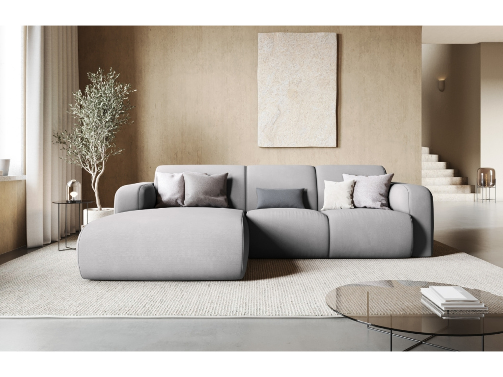 Luxus, maximální pohodlí a moderní design – to vše do vaší společenské místnosti přinese rohová pohovka Lola od značky Windsor & Co! O váš dokonalý odpočinek se postará čalounění ze strukturované látky ve světle šedém provedení, které je měkké na dotek. Látka je opatřena voděodolnou vrstvou, která představuje skvělého pomocníka pro ochranu povrchu před znečištěním. Pohovka Lola svými proporcemi nabídne prostorné a pohodlné místo pro 4 osoby. Pro sjednocení vašeho sedacího koutu doporučujeme pohovku doplnit také stylovým křeslem a podnožkami ze stejnojmenné série. Všechny produkty nabízíme v několika barvách. Odpočiňte si a relaxujte ve stylu!