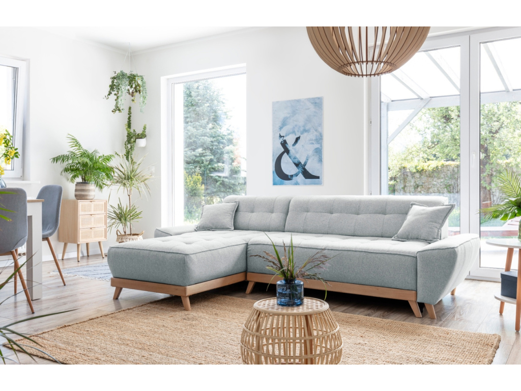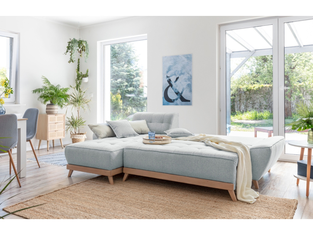 Rohová rozkládací pohovka Dazzling Daisy od značky Miuform snoubí moderní design a funkčnost se skandinávským nádechem. Dazzling Daisy je ideální pohovkou především do interiérů, kde potřebujete uspořit místo na sezení i spaní. V pár jednoduchých krocích získáte z pohovky pohodlné a prostorné lůžko na spaní pro návštěvu a nechybí ani úložný prostor pro veškeré lůžkoviny a polštářky. Podnož z borovicového dřeva v přírodní barvě dodává nábytku vzdušný dojem. Příjemná látka zajistí pohodlí a elegantním doplňkem k pohovce jsou dva dekorativní polštáře. Vyberte si svou ideální pohovku z řady Dazzling Daisy, která nabízí několik barevných provedení.