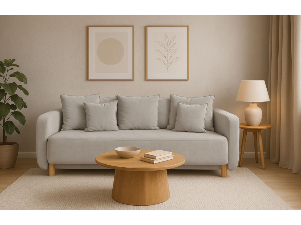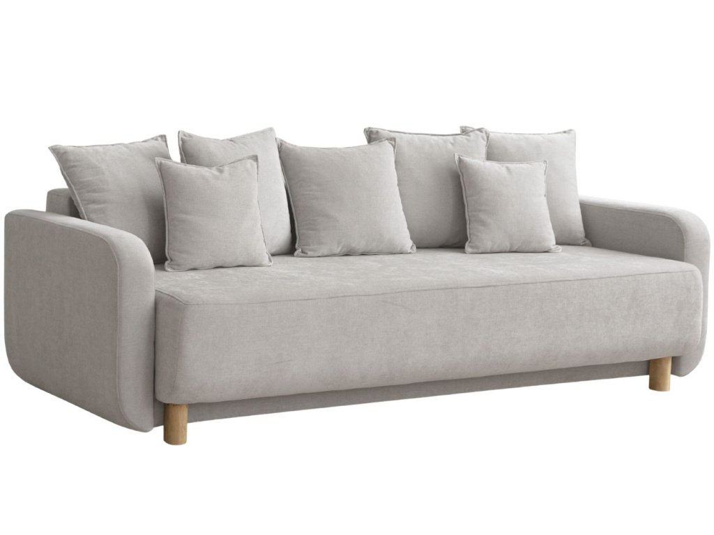 Trojmístná pohovka Elen je skvělou ukázkou spojení funkčnosti a současné elegance. Její zaoblené linie a elegantní proporce působí nadčasově a vkusně, ať už ji umístíte do minimalistického, skandinávského nebo městského interiéru. Díky důmyslnému designu poslouží nejen jako stylové posezení, ale také jako pohodlné lůžko, které se snadno rozkládá a ukrývá praktický úložný prostor ideální pro lůžkoviny nebo sezónní doplňky. Středně měkký sedák poskytuje rovnováhu mezi komfortem a oporou, zatímco sedm polštářů různých velikostí zajišťuje maximální pohodlí i vizuální útulnost. Čalounění z látky Wind je hebké na dotek a díky jemnému vlasu s proměnlivým zabarvením působí luxusně. Jemný povrch s lehkým leskem dodává pohovce eleganci, zatímco vysoká odolnost vůči oděru a snadná údržba zajišťují její praktičnost i při každodenním používání. Pro doladění atmosféry ji doporučujeme doplnit o měkký pléd, stylový konferenční stolek či stojací lampu.