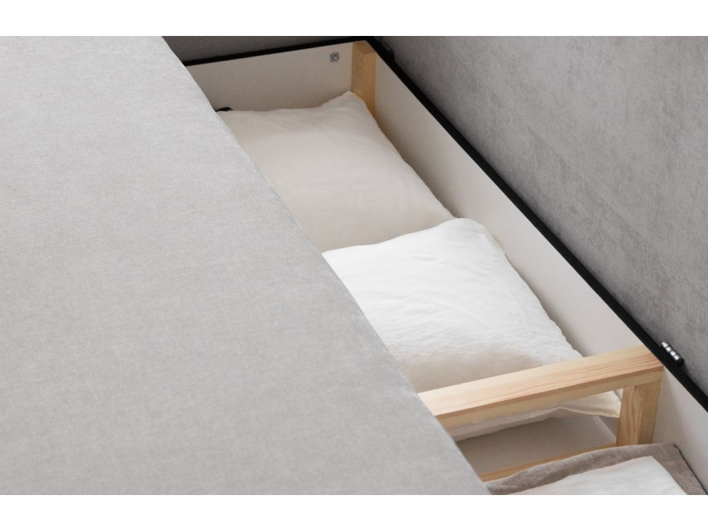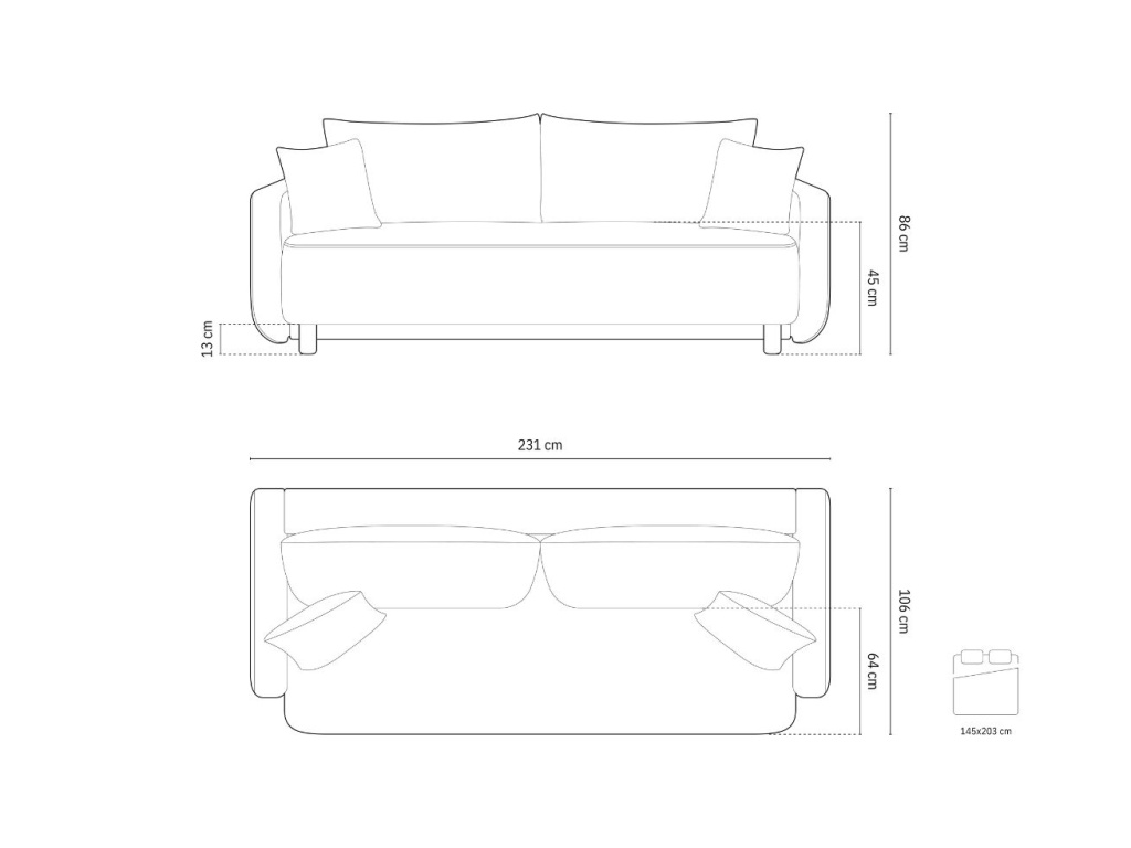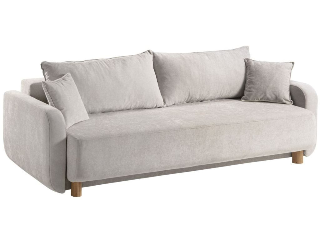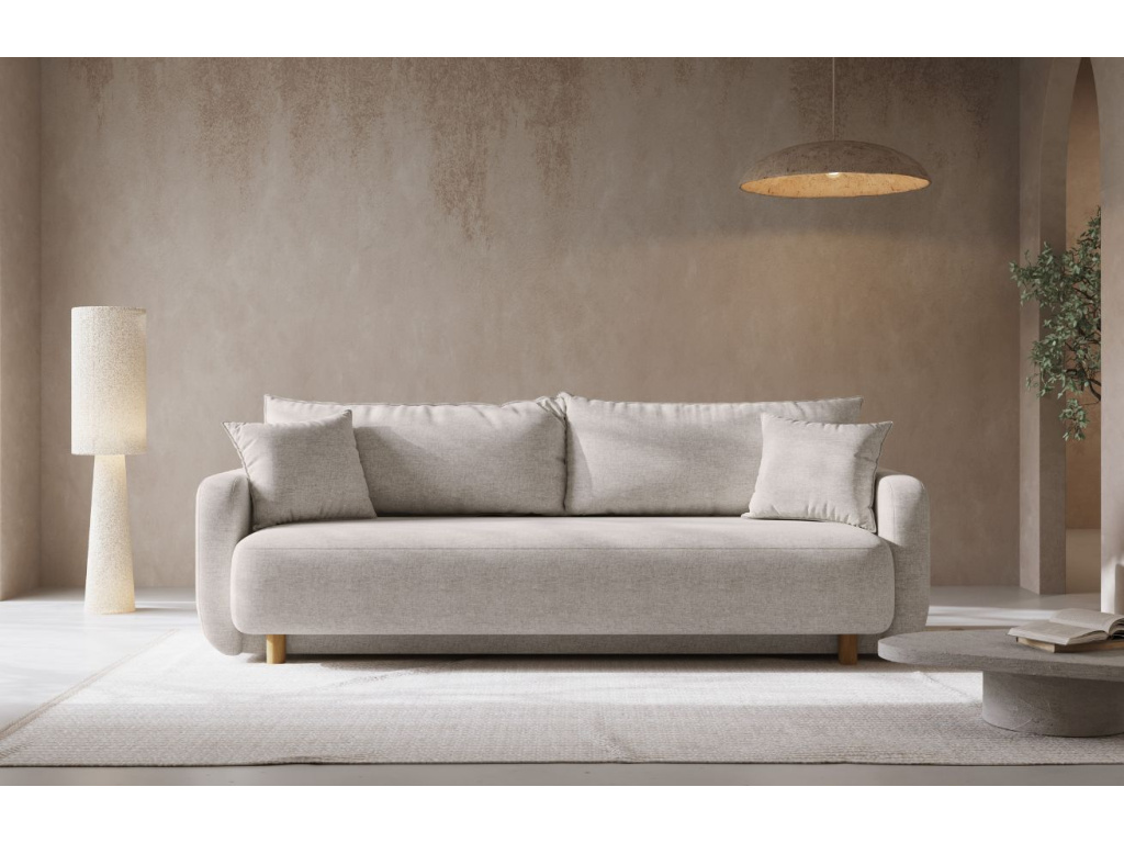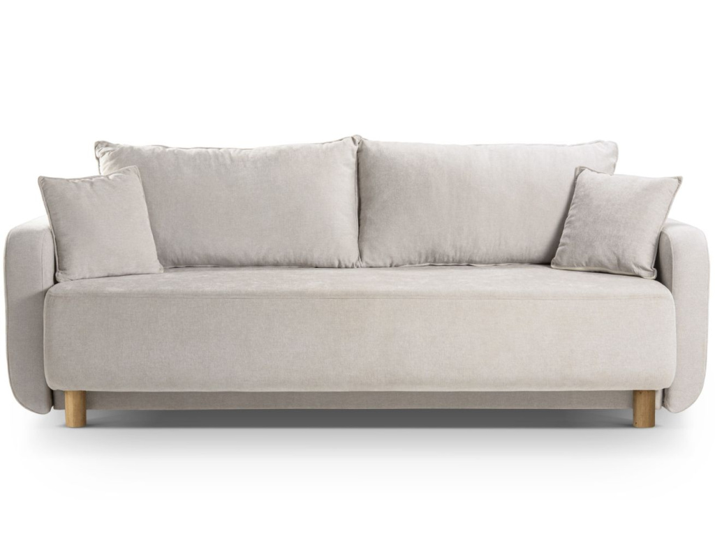 Trojmístná pohovka Elen je skvělou ukázkou spojení funkčnosti a současné elegance. Její zaoblené linie a elegantní proporce působí nadčasově a vkusně, ať už ji umístíte do minimalistického, skandinávského nebo městského interiéru. Díky důmyslnému designu poslouží nejen jako stylové posezení, ale také jako pohodlné lůžko, které se snadno rozkládá a ukrývá praktický úložný prostor ideální pro lůžkoviny nebo sezónní doplňky. Sedák střední tuhosti nabízí ideální kombinaci pohodlí a opory, zatímco polštáře dodávají pohovce na komfortu i útulném vzhledu. Čalounění z látky Wind je hebké na dotek a díky jemnému vlasu s proměnlivým zabarvením působí luxusně. Jemný povrch s lehkým leskem dodává pohovce eleganci, zatímco vysoká odolnost vůči oděru a snadná údržba zajišťují její praktičnost i při každodenním používání. Pro doladění atmosféry ji doporučujeme doplnit o měkký pléd, stylový konferenční stolek či stojací lampu.