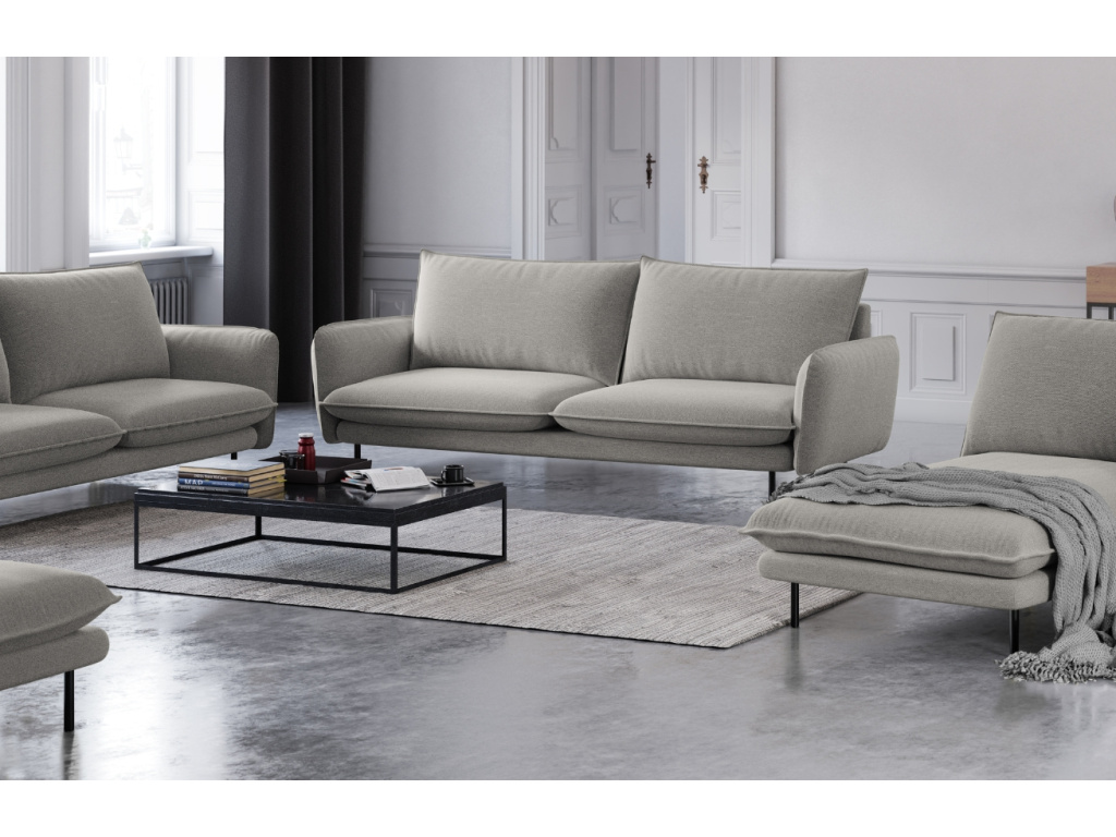 Pohovka Vienna od Cosmopolitan Design je poctou nadčasové eleganci, smyslu pro detail a dokonale vyváženým proporcím. Jemně tvarované opěrky, měkké polštáře a ladná silueta jí propůjčují lehkost, která zaujme na první pohled. Kontrastní černě lakovaná kovová podnož dodává celku vizuální vzdušnost a současně zajišťuje stabilitu. O vaše maximální pohodlí se postará čalounění ze strukturované látky s výraznou texturou – příjemnou na dotek, vizuálně zajímavou a zároveň mimořádně odolnou vůči každodennímu používání. Vienna vždy zapadne s lehkostí a zároveň dodá prostoru výraz. A protože každý domov má jiné potřeby, kolekce Vienna je k dispozici v několika velikostech – od kompaktních modelů ideálních do menších bytů až po velkorysé pohovky, na které se vejde celá rodina i s chlupatým parťákem.