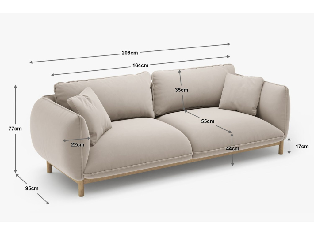 Trojmístná pohovka Ada inspirovaná skandinávským designem v sobě spojuje jemnou eleganci a maximální pohodlí. Její měkké linie se zaoblenými područkami a hluboký polstrovaný sedák přímo vybízejí k relaxaci a odpočinku, zatímco robustní dřevěný rám s odkrytou podnoží dodává pohovce přirozený řemeslný vzhled, který vynikne v moderním i útulně laděném interiéru. Strukturovaná látka Wind vytváří nepravidelné zbarvení, které se mění podle úhlu světla a směru vlasu. Díky vysoké odolnosti proti opotřebení a snadné údržbě se látka Wind stává ideální volbou pro každodenní používání a pro domácnosti s mazlíčky. Kolekce Ada zahrnuje kromě této kompaktní trojmístné varianty také prostorné rohové pohovky, klasické vícemístné modely i praktickou podnožku, takže si snadno vytvoříte harmonický set na míru svému domovu. Stačí ji doplnit jemným kobercem, dekoračním plédem nebo designovým konferenčním stolkem a rázem vznikne dokonalý kout pro odpočinek s nádechem elegance.