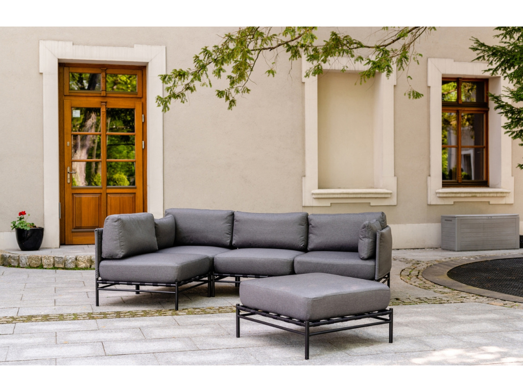Zrelaxujte po náročném dni na parádní rohové zahradní pohovce Salve. Pohovka v nadčasové šedé barvě s pohodlným čalouněním z olefinu se pyšní vysokou odolností vůči oděru. Jeho skvělou a preferovanou vlastností je především odolnost vůči skvrnám, vysoká UV stabilita barev, odpudivost nečistot a je rychleschnoucí. V kombinaci s kovovou, lakovanou podnoží působí moderním a svěžím dojmem. Pohovka je variabilní, dle svých potřeb můžete její rohovou část umístit na pravou i levou stranu. Součástí balení je i podnožka, kterou můžete využít k prodloužení sedáku pohovky, samostatně jako taburet nebo odkládací prostor. Přidejte k ní i křeslo nebo další produkty od značky Sit Sit.
