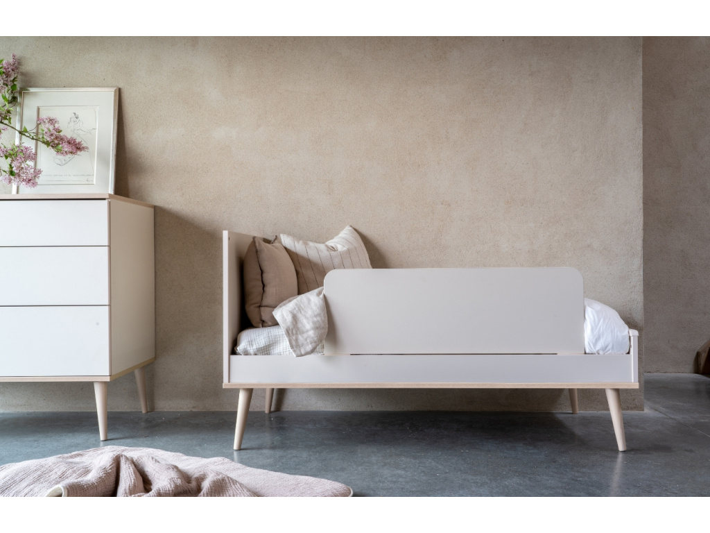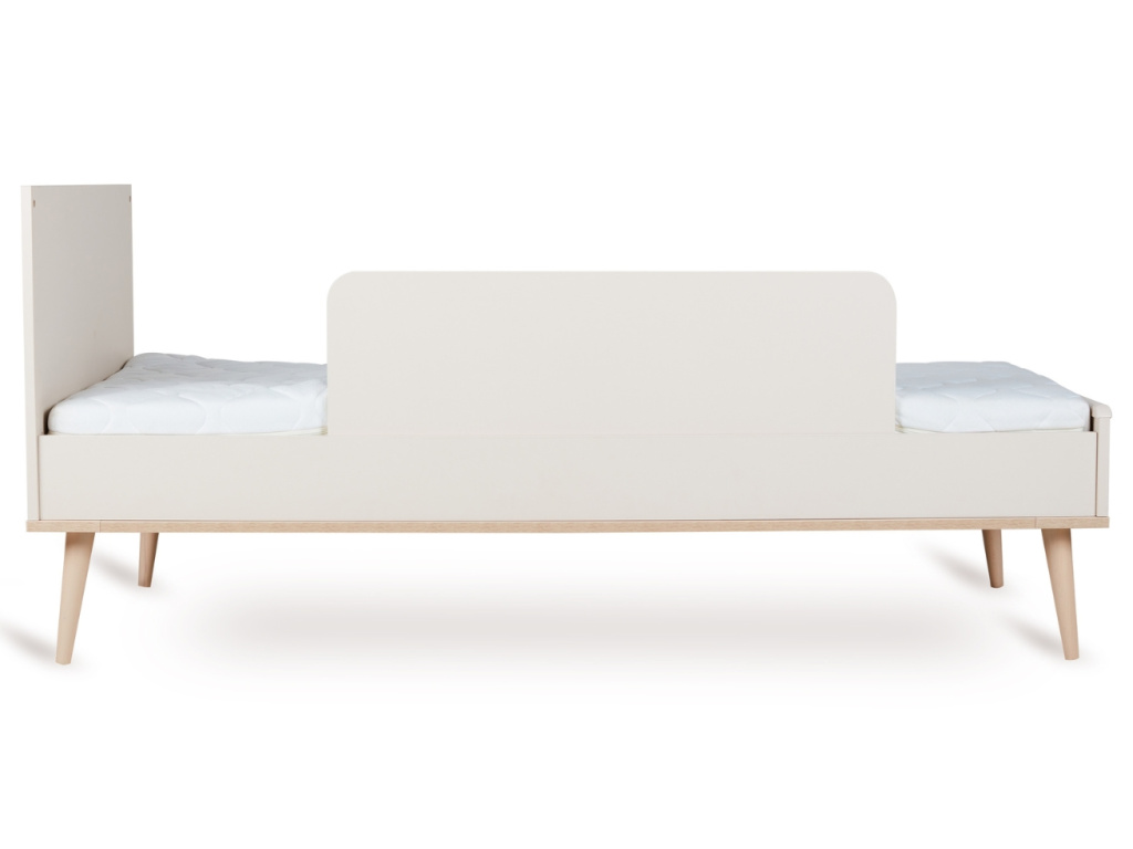Starostliví rodiče se nemusí bát, zábrana Quax Protector spolehlivě zaručí, že ratolest z postele nespadne. Díky zaobleným hranám se o ni neporaní. Zábrana pasuje k jednolůžkovým postelím QUAX a její instalaci zvládnete jednoduše a během chvilky. Stačí ji zasunout pod matraci. Zábrana je vyrobena z laminované dřevotřísky v jednoduchém minimalistickém designu.