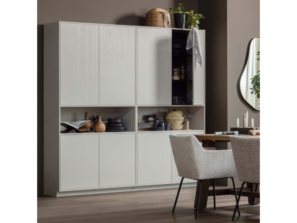 Moderní šatní skříň Frederica je vyrobena z masivní borovice, která má zajímavou broušenou povrchovou úpravu. Skříň nabízí v horní části tři police a ve spodní části dvě. Mezi nimi je pak otevřený prostor například pro umístění dekorací nebo příborů. Čisté linie skříně nejsou přerušovány úchyty, s moderním systémem push-to-open se dvířka otevírají a zavírají jednoduše a tiše.