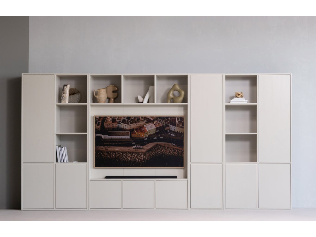 Více infoSvětle šedá dřevěná TV stěna Meggy 215 x 160 cm