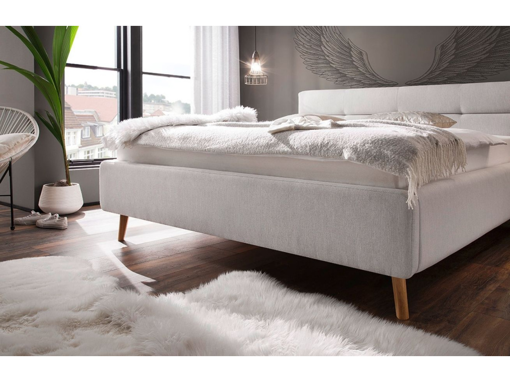 Stylová dvoulůžková postel Lotte od značky Meise Möbel zaujme na první pohled svým vzhledem. Příjemné látkové čalounění ve světle šedé barvě vytváří v kombinaci s designovým prošíváním a masivní dubovou podnoží jedinečný kontrast, který do vašeho interiéru vnese trendy prvek. Postel disponuje roštem, který zajistí maximální komfort a bezpečí při spánku. Postel disponuje praktickým úložným prostorem na obou stranách postele a díky výklopnému systému můžete do tohoto prostoru pohodlně uložit váš inventář. Postel se skvěle hodí do moderních interiérů.
