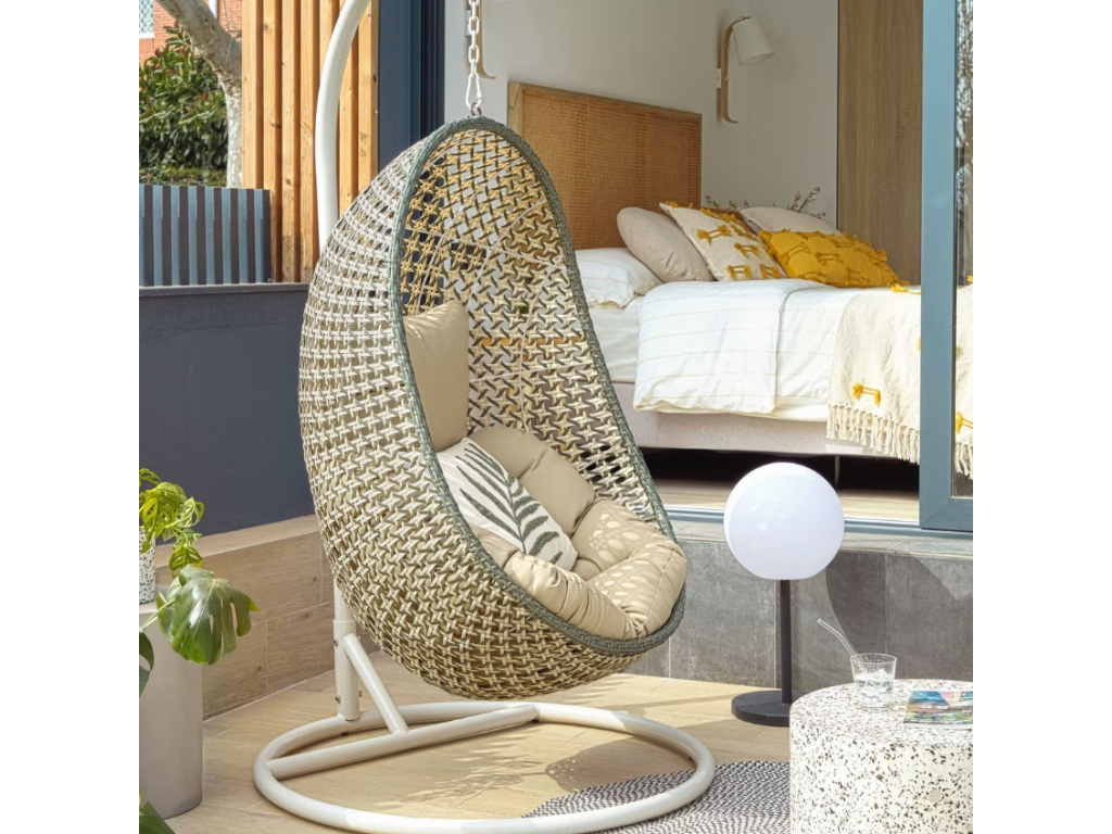 Konstrukce Dalias značky Kave Home představuje skvělý způsob, jak jednoduše umístit závěsné křeslo do vašeho interiéru i krytého exteriéru. Díky závěsnému křeslu se vaše chvíle odpočinku změní v opravdový požitek. Lehké pohupování s knížkou v ruce, to je ten pravý relax, na který se budete každý den těšit.