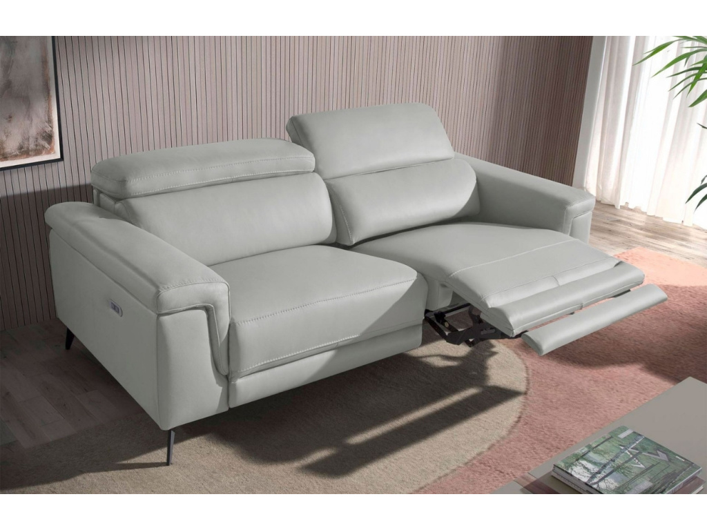 Trojmístná pohovka, která vás přesvědčí nejen svým nadčasovým designem, ale i vysokou úrovní pohodlí. Kvalitní hovězí kůže ve světle šedém odstínu dodá interiéru luxusní atmosféru a zároveň odolá každodennímu používání. Díky elektrickému relaxačnímu systému si snadno přizpůsobíte sklon sedáku i opěradla. Nezávisle nastavitelné opěrky hlavy podpoří správné držení těla a poskytnou maximální komfort. Elegantní kovová podnož podtrhne moderní charakter této pohovky a přinese do vašeho domova lehkost a vzdušnost.