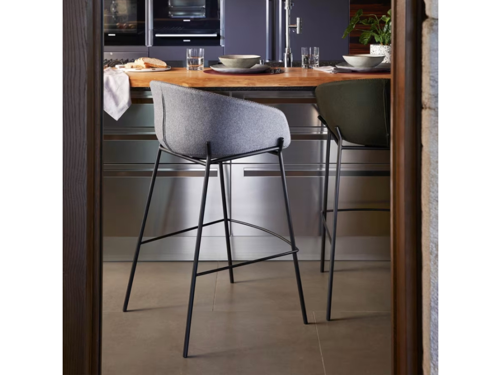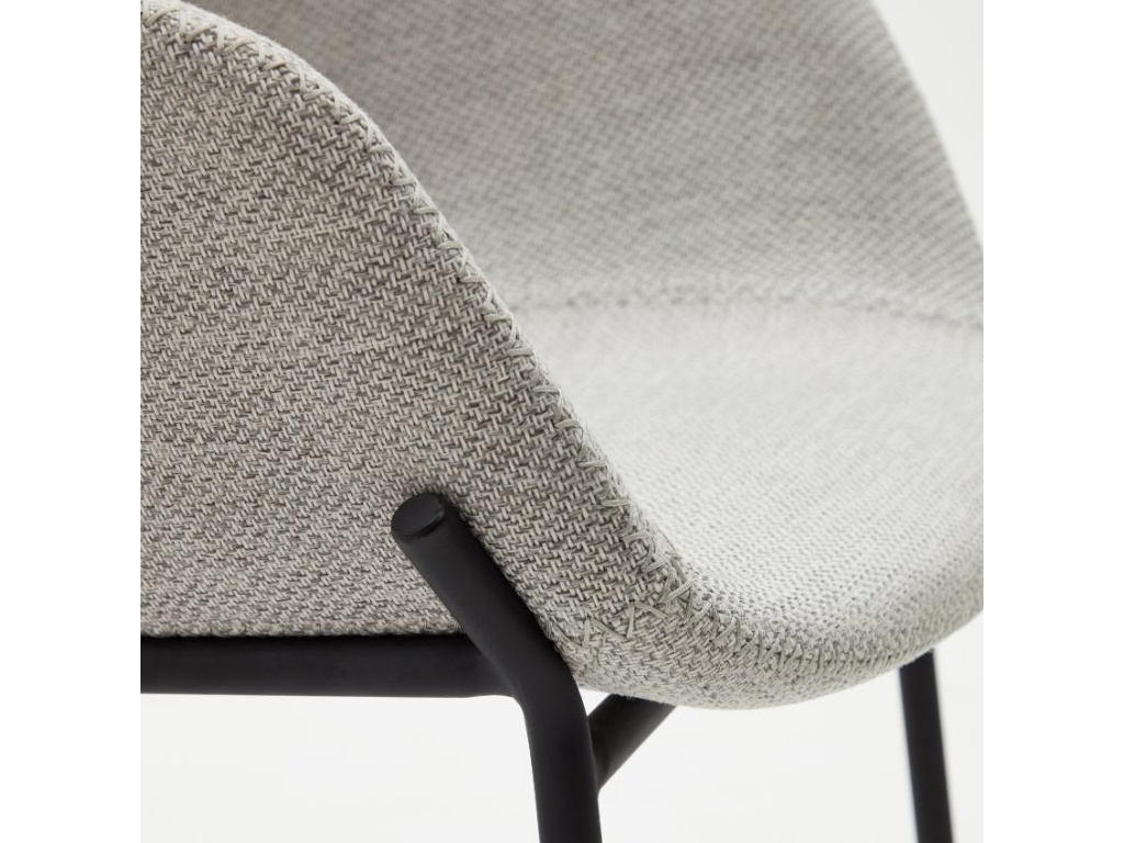 Světle šedá barová židle Kave Home Yvette bude skvělým, designovým doplňkem domácností i komerčních prostor laděných do industriálního nebo skandinávského stylu. Černě lakovaná kovová podnož je v duchu moderních trendů a měkké čalounění zajistí pohodlné posezení u koktejlu.