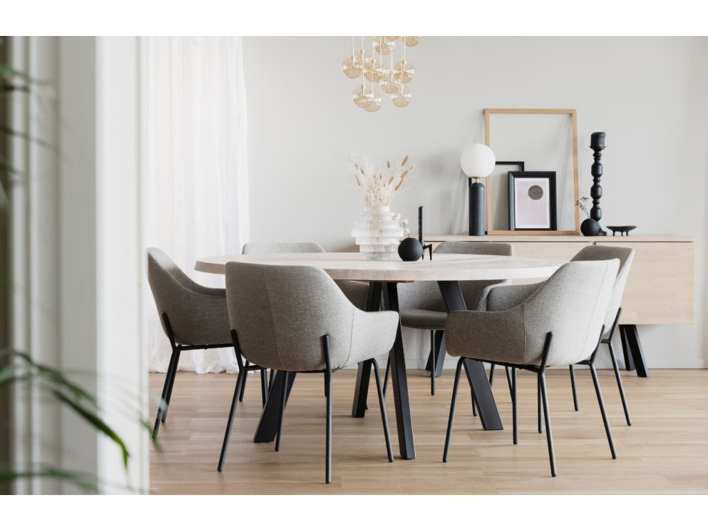 Jídelní židle ROWICO HALEY s čalouněním ze světle šedé látky nabízí vysoký komfort sezení. Židle je usazena na černě lakované kovové podnoži, která zajímavě přesahuje až do spodní části opěradla a zajišťuje její pevnost a stabilitu. Díky svému jednoduchému a elegantnímu stylu se HALEY skvěle hodí k většině jídelních stolů.