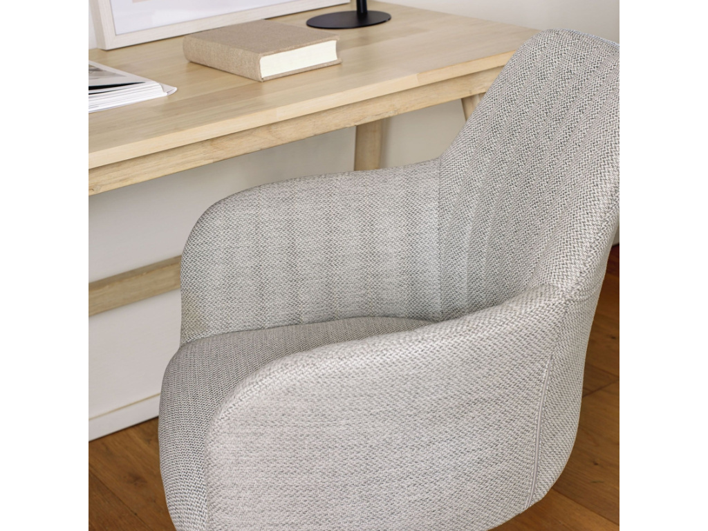 Stylová konferenční židle Kave Home Madina bude díky svému elegantnímu designu skvělým doplňkem nejen v moderních komerčních prostorách, jako jsou kanceláře, ale hodí se i do soukromých prostor. Vysoce komfortní polstrovaný a lehce vyšívaný čalouněný a sedák je vyrobený z příjemné látky ve světle šedé barvě a celý je navíc otočný. Židle Madina je dále opatřena kovovou výškově nastavitelnou podnoží se základnou tvořenou pěti rameny, na kterých jsou umístěna kolečka. Kolečka jsou navržena a vyrobena tak, aby chránila jakýkoliv typ podlahy, a tak se o své parkety rozhodně bát nemusíte. Díky jednoduchým liniím a moderní eleganci nabízí židle Madina pohodlné a zároveň stylové posezení, které jistě oceníte.