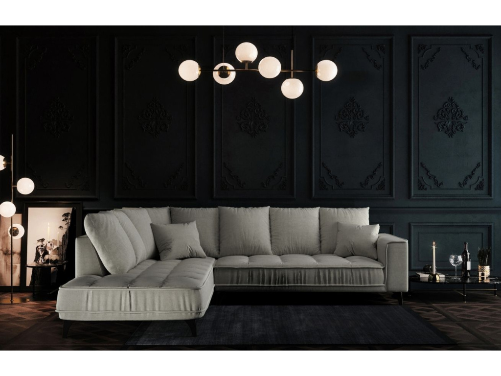 Podívám seSvětle šedá látková rohová pohovka DEVICHY Chloe 288 cm, pravá