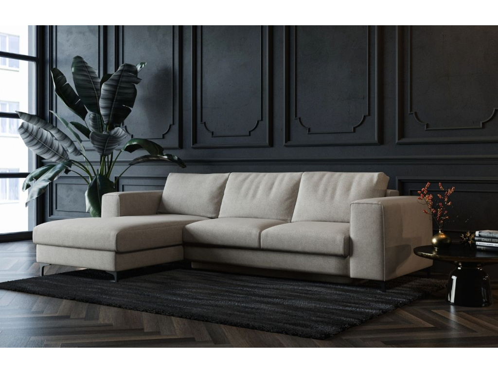 Stylová a luxusní designová rohová pohovka DEVICHY Rothe se díky svému jedinečnému a minimalistickému tvaru stane nepřehlédnutelnou součástí vaší domácnosti. Stabilní kovová podnož je dokonale doplněna o čalounění z kvalitní a příjemné látky v šedém provedení, která je charakteristická pro svou nadprůměrnou odolnost a speciální vodě odpudivou úpravu. Pohovku DEVICHY Rothe navíc snadno můžete proměnit na pohodlné a dostatečně velké lůžko, díky jednoduchému rozkladu. Reprezentativní a exkluzivní vzhled dokonale kombinuje pohodlí a styl.