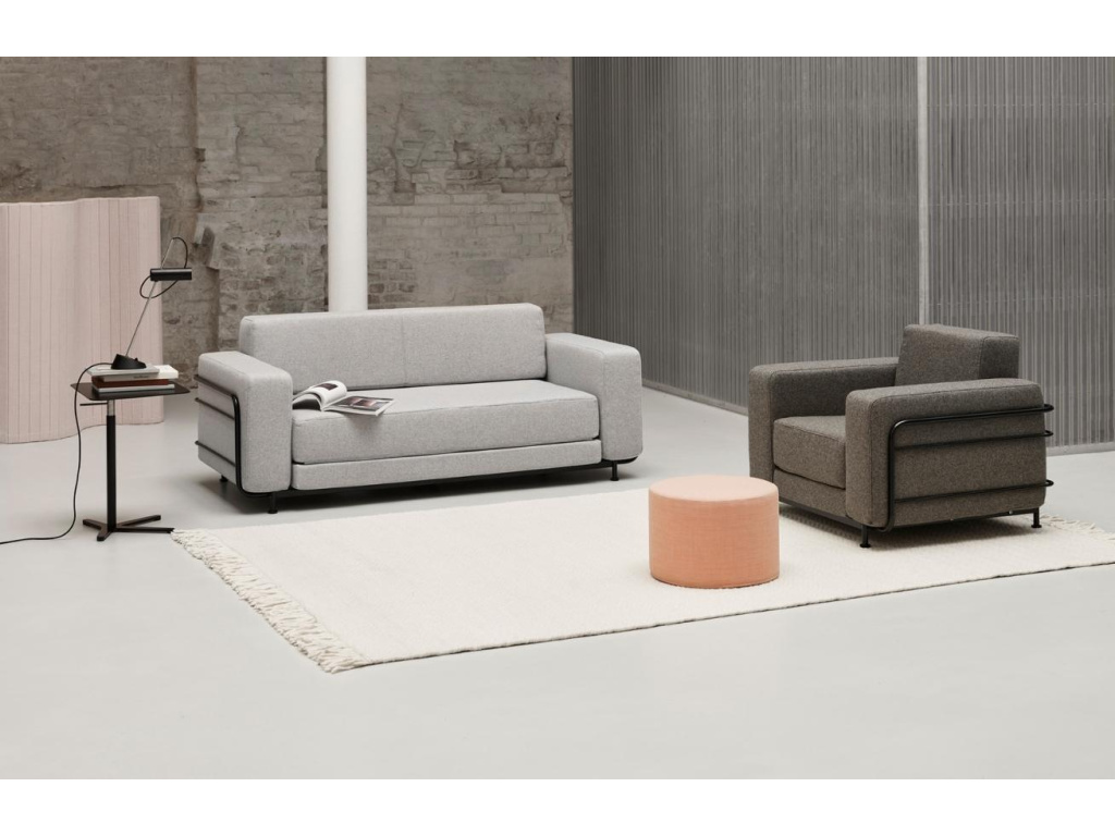 Dvoumístná pohovka Softline Silver zaujme již na první pohled svou robustností. Mohutné sedací polštáře ve strukturované látce jsou obklíčeny ze všech stran masivní černě lakovanou kovovou konstrukcí, díky čemuž získává na stabilitě a odolnosti. Podnož, sahající téměř po celé výšce pohovky, je zároveň designovým prvkem, díky kterému se pohovka odlišuje od ostatních. Jako skrytý prvek v sobě ukrývá možnost pohovku rozložit a přeměnit jej tak snadno na lůžko pro hosty. Pohovka se díky odolnosti skvěle hodí nejen do komerčních prostor, ale také do domácího prostředí.
