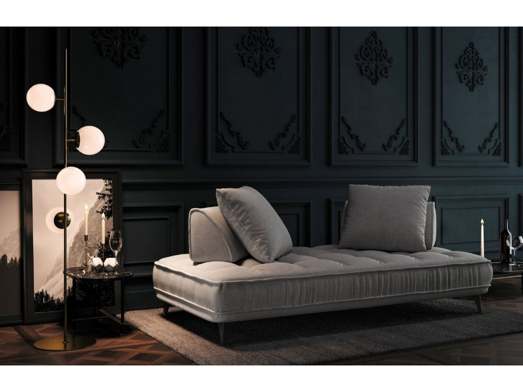 Stylová a luxusní designová pohovka DEVICHY Chloe se díky svému jedinečnému a minimalistickému tvaru stane nepřehlédnutelnou součástí vaší domácnosti. Stabilní kovová podnož je dokonale doplněna o čalounění z kvalitní tkaniny ve světle šedém provedení, která je charakteristická pro svou nadprůměrnou odolnost a speciální vodě odpudivou úpravu. Po odebrání dekorativních i opěrných polštářů lze z pohovky udělat lůžko, a tak se i vaše návštěva pohodlně a stylově vyspí.