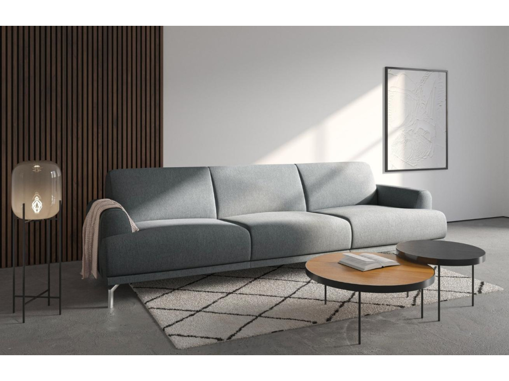 Designová pohovka MESONICA Puzo rozhodně zaujme na první pohled. Robustně vyhlížející pohovka je čalouněná velmi kvalitní a příjemnou látkou v krásném světle šedém odstínu a opatřená stabilní kovovou podnoží. Tato pohovka elegantních linií a působivého provedení vnese do vašeho domova jedinečný styl.