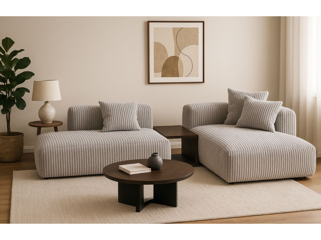 Sedací souprava Martina představuje dokonalé spojení moderního designu a výjimečného pohodlí. Její linie dodávají interiéru sofistikovaný vzhled a zároveň poskytují maximální komfort. Díky extra měkkému sedáku a opěradlu nabízí nepřekonatelnou oporu pro tělo, zatímco vlnové pružiny a silná vrstva kvalitní pěny garantují optimální pružnost. Pohovka je čalouněna látkou Tilia, která svou měkkostí a strukturou připomíná manšestr. Široké plyšové pruhy s vysokým, sametově hebkým vlasem, vytvářejí působivý stínový efekt, jenž mění vzhled pohovky v závislosti na světle a úhlu pohledu. Tento materiál vyniká nejen vizuálním šarmem, ale i odolností proti oděru, takže je ideální volbou pro každodenní používání v rodinných interiérech. Certifikát OEKO-TEX ® STANDARD 100 garantuje, že materiál neobsahuje škodlivé látky a je bezpečný pro zdraví. Pro ještě větší komfort jsou k dispozici polštáře. Je však třeba počítat s tím, že nejsou součástí základní sady a prodávají se samostatně. Skvěle vynikne v moderním, boho i retro laděném interiéru a krásně ji doplní stylový pléd, dekorativní stolek nebo výrazná pokojová rostlina.