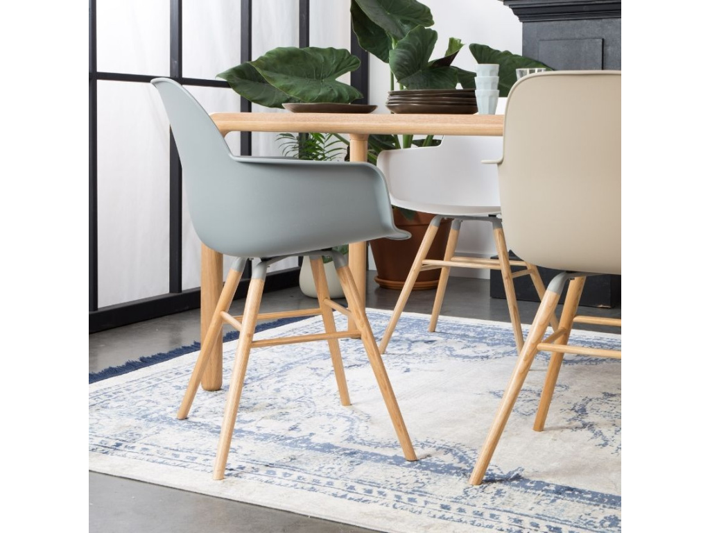 Pohodlná a elegantní jídelní židle ZUIVER ALBERT KUIP ve světle šedé barvě. Sedák židle z polypropylenu připevněn na pevné podnoži z kvalitního jasanového dřeva pomocí hliníkového rámu. Díky tomu poskytuje židle nosnost až 140 kg.