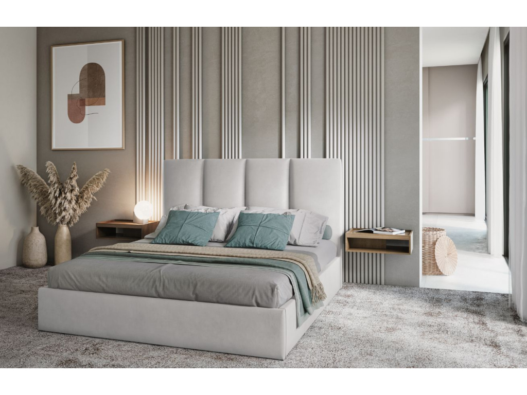 Relaxujte a užívejte si pohodlí v dvoulůžkové posteli Pyla. Měkké čelo s elegantním designovým prošíváním zajistí příjemný vzhled postele, a navíc vám poskytne oporu při sledování televize nebo čtení knih a časopisů. Sametové čalounění je vyrobeno z tkaniny, která je vysoce odolná proti poškození a zabraňuje pronikání tekutin. Postel je doplněna úložným prostorem pod oběma lůžky, do kterého můžete vkládat vaše ložní prádlo. Spojte svou ložnici s touto atraktivní postelí, která je v nabídce v řadě barevném provedení.
