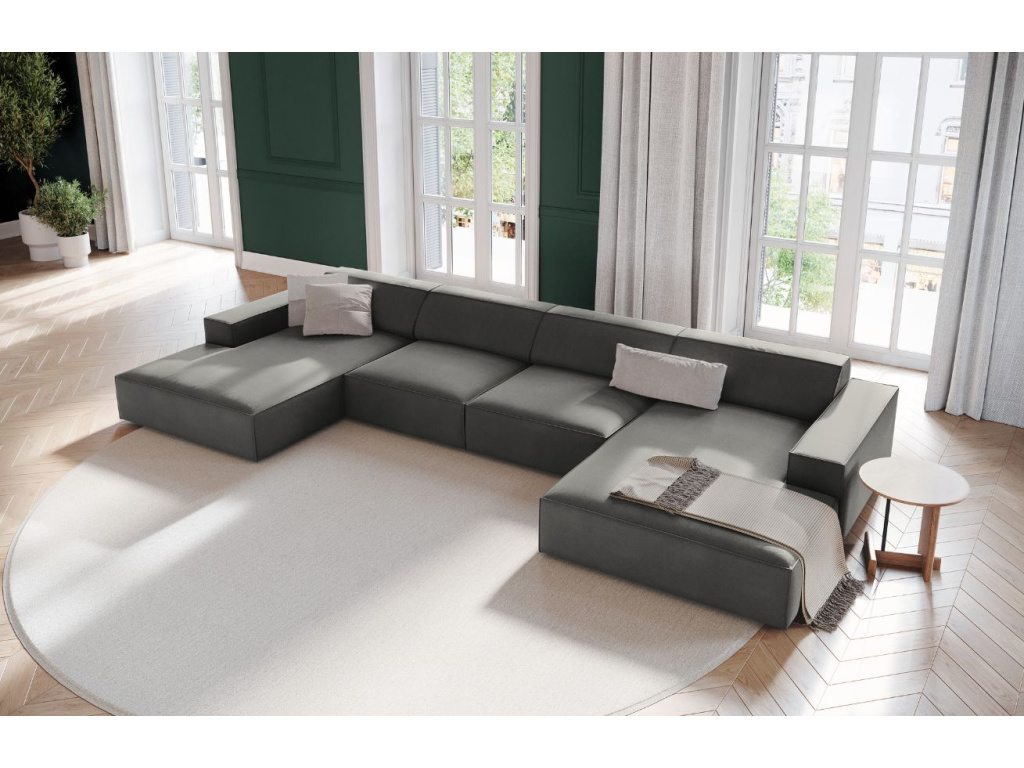 Prostorná modulární šestimístná pohovka Jodie od značky Micadoni zaujme svou krásnou siluetou. Čalounění je vyrobené z tkaniny, která imituje samet s jemným leskem. Látka se vyznačuje dobrou odolností proti oděru, což výrazně snižuje riziko jejího poškození, také prošla testem na cigarety, díky tomu je pohovka vhodná i do komerčních prostor. Její polstrovaný tvar vám zaručí plnohodnotný odpočinek, zatímco hluboký sedák umožní dokonalou relaxaci. Opřít se můžete také o tvarované opěráky a široké područky, které vybízejí k nespoutanému lenošení. Nízká podnož ladí s útulnou siluetou nábytku. Velký výběr modulů vám umožní vytvořit si kombinace, které budou nejlépe vyhovovat vašemu obývacímu pokoji v minimalistickém či skandinávském stylu.