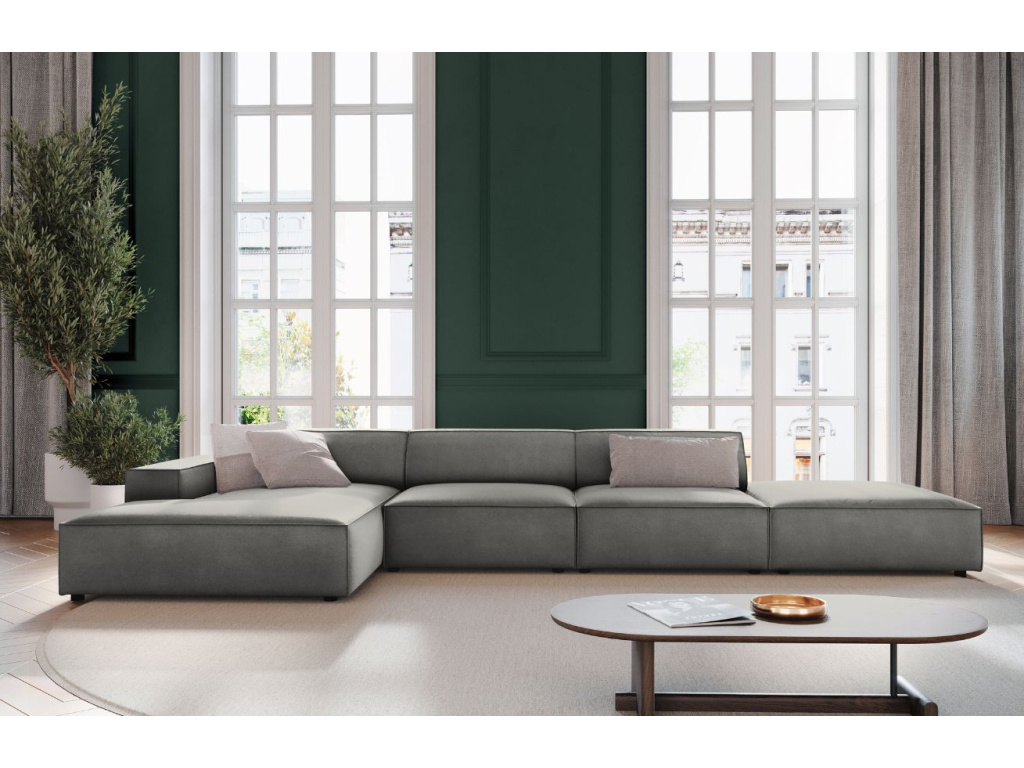 Prostorná modulární rohová pohovka Jodie od značky Micadoni zaujme svou krásnou siluetou. Čalounění je vyrobené z tkaniny, která imituje samet s jemným leskem. Látka se vyznačuje dobrou odolností proti oděru, což výrazně snižuje riziko jejího poškození, také prošla testem na cigarety, díky tomu je pohovka vhodná i do komerčních prostor. Její polstrovaný tvar vám zaručí plnohodnotný odpočinek, zatímco hluboký sedák umožní dokonalou relaxaci. Opřít se můžete také o tvarované opěráky a široké područky, které vybízejí k nespoutanému lenošení. Nízká podnož ladí s útulnou siluetou nábytku. Velký výběr modulů vám umožní vytvořit si kombinace, které budou nejlépe vyhovovat vašemu obývacímu pokoji v minimalistickém či skandinávském stylu.