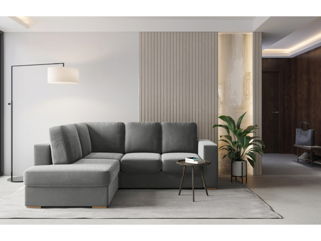 Více infoSvětle šedá sametová rohová rozkládací pohovka MESONICA Lago, Levá 241 cm