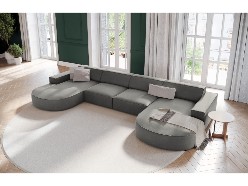 Prostorná modulární šestimístná pohovka Jodie od značky Micadoni zaujme svou krásnou siluetou. Čalounění je vyrobené z tkaniny, která imituje samet s jemným leskem. Látka se vyznačuje dobrou odolností proti oděru, což výrazně snižuje riziko jejího poškození, také prošla testem na cigarety, díky tomu je pohovka vhodná i do komerčních prostor. Její polstrovaný tvar vám zaručí plnohodnotný odpočinek, zatímco hluboký sedák umožní dokonalou relaxaci. Opřít se můžete také o tvarované opěráky a široké područky, které vybízejí k nespoutanému lenošení. Nízká podnož ladí s útulnou siluetou nábytku. Velký výběr modulů vám umožní vytvořit si kombinace, které budou nejlépe vyhovovat vašemu obývacímu pokoji v minimalistickém či skandinávském stylu.