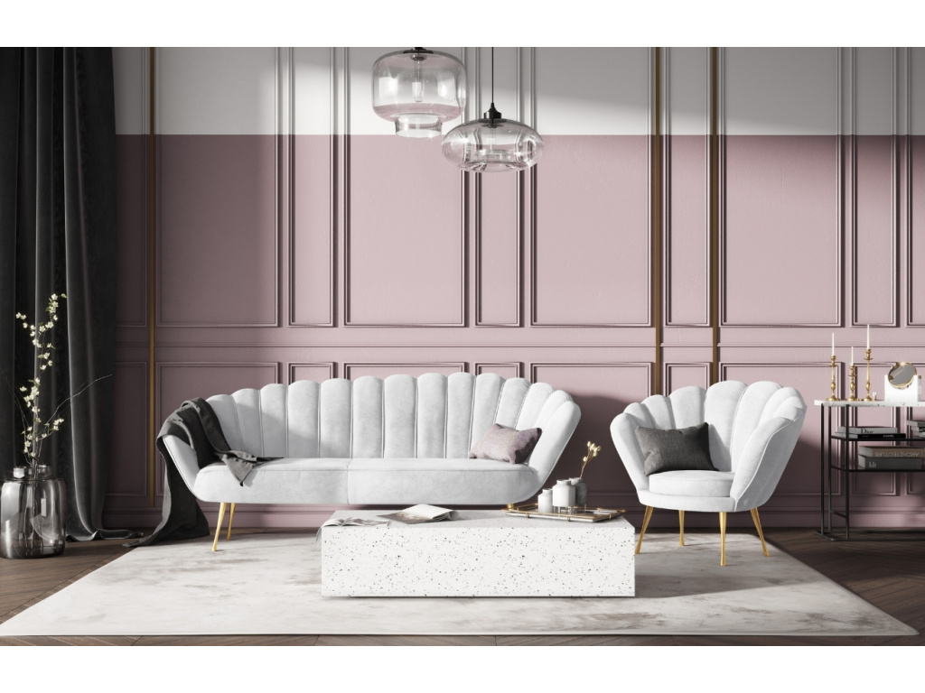 Třímístná pohovka Kingston značky Cosmopolitan Design se vyznačuje jemným prošíváním, které jí dodává elegantní a vzdušný vzhled. Jemně lesklé sametové čalounění ve světle šedém odstínu je hebké a příjemné na dotek. Tkanina je velmi odolná proti oděru a absorpci tekutin, čímž zaručí dlouhodobé používání bez známek opotřebení. Celkový design pohovky doplňuje zlatě lakovaná kovová podnož. Pro dokonale sladěný sedací kout doporučujeme doplnit pohovku o křeslo ze stejnojmenné série. Pohovka je dostupná v 11 barevných provedeních, od šedých tónů až po výrazné a pestré barvy. Užijte si pohodlí a styl v jednom!