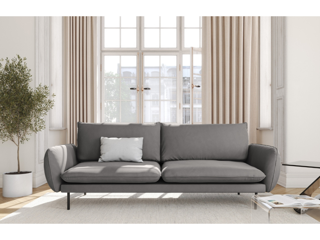 Pohovka Vienna od Cosmopolitan Design je poctou nadčasové eleganci, smyslu pro detail a dokonale vyváženým proporcím. Jemně tvarované opěrky, měkké polštáře a ladná silueta jí propůjčují lehkost, která zaujme na první pohled. Kontrastní černě lakovaná kovová podnož dodává celku vizuální vzdušnost a současně zajišťuje stabilitu. Luxusní sametový potah je nejen krásný na pohled, ale i příjemný na dotek – hladký, hebký a přirozeně elegantní. Na výběr je široká paleta pečlivě vybraných odstínů, které se snadno sladí s jemně minimalistickým interiérem i s odvážnějšími koncepty. Vienna vždy zapadne s lehkostí a zároveň dodá prostoru výraz. A protože každý domov má jiné potřeby, kolekce Vienna je k dispozici v několika velikostech – od kompaktních modelů ideálních do menších bytů až po velkorysé pohovky, na které se vejde celá rodina i s chlupatým parťákem.