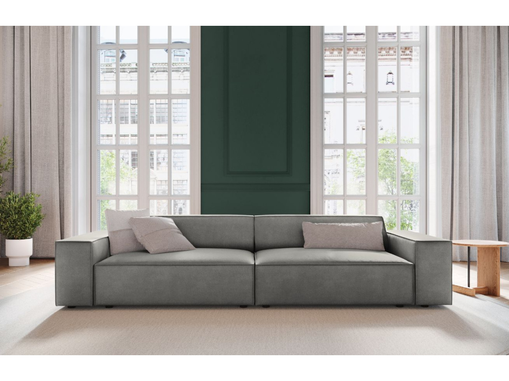 Prostorná modulární trojmístná pohovka Jodie od značky Micadoni zaujme svou krásnou siluetou. Čalounění je vyrobené z tkaniny, která imituje samet s jemným leskem. Látka se vyznačuje dobrou odolností proti oděru, což výrazně snižuje riziko jejího poškození, také prošla testem na cigarety, díky tomu je pohovka vhodná i do komerčních prostor. Její polstrovaný tvar vám zaručí plnohodnotný odpočinek, zatímco hluboký sedák umožní dokonalou relaxaci. Opřít se můžete také o tvarované opěráky a široké područky, které vybízejí k nespoutanému lenošení. Nízká podnož ladí s útulnou siluetou nábytku. Velký výběr modulů vám umožní vytvořit si kombinace, které budou nejlépe vyhovovat vašemu obývacímu pokoji v minimalistickém či skandinávském stylu.