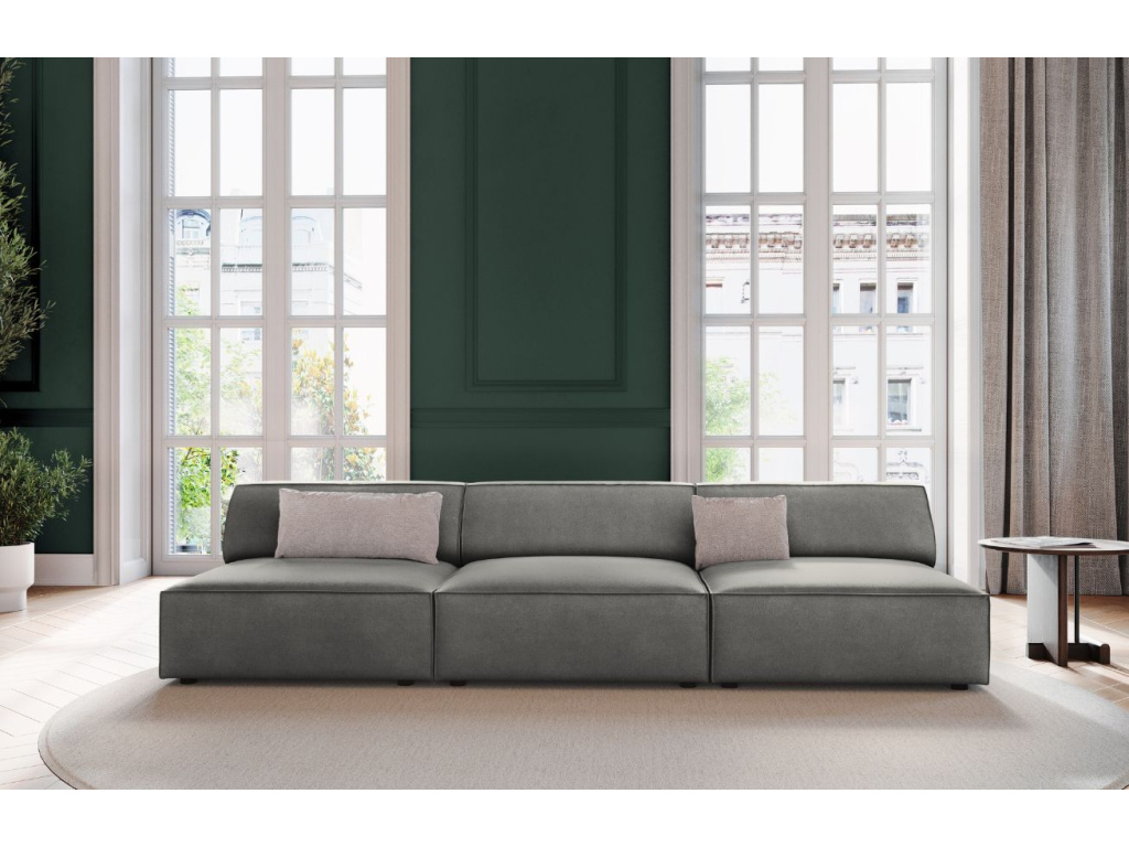 Prostorná modulární trojmístná pohovka Jodie od značky Micadoni zaujme svou krásnou siluetou. Čalounění je vyrobené z tkaniny, která imituje samet s jemným leskem. Látka se vyznačuje dobrou odolností proti oděru, což výrazně snižuje riziko jejího poškození, také prošla testem na cigarety, díky tomu je pohovka vhodná i do komerčních prostor. Její polstrovaný tvar vám zaručí plnohodnotný odpočinek, zatímco hluboký sedák umožní dokonalou relaxaci. Opřít se můžete také o tvarované opěráky a široké područky, které vybízejí k nespoutanému lenošení. Nízká podnož ladí s útulnou siluetou nábytku. Velký výběr modulů vám umožní vytvořit si kombinace, které budou nejlépe vyhovovat vašemu obývacímu pokoji v minimalistickém či skandinávském stylu.