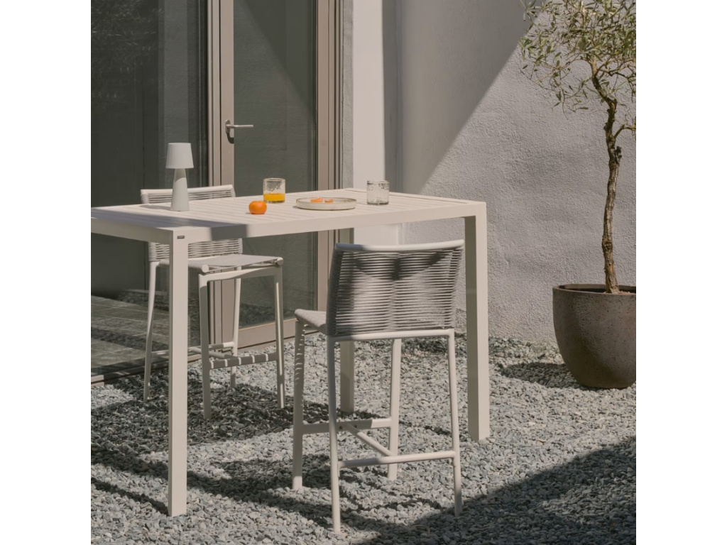 Zahradní barová židle Culip značky Kave Home má konstrukci vyrobenou z lakovaného hliníku. Tento lehký materiál je 100 % vhodný pro venkovní použití, je odolný vůči korozi a UV záření. Culip tak bude vaším společníkem na dlouhá léta, zažije s vámi nespočet grilovaček, oslav i rodinných setkání. Díky výpletu z pružného polyesterového lana vám navíc poskytne maximální pohodlí. V sérii Culip k ní najdete také další produkty, díky kterým můžete vytvořit dokonale sladěné zahradní posezení.