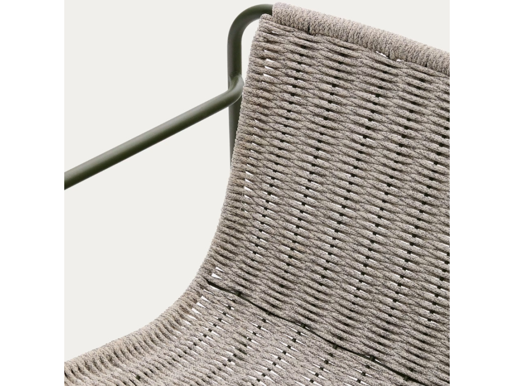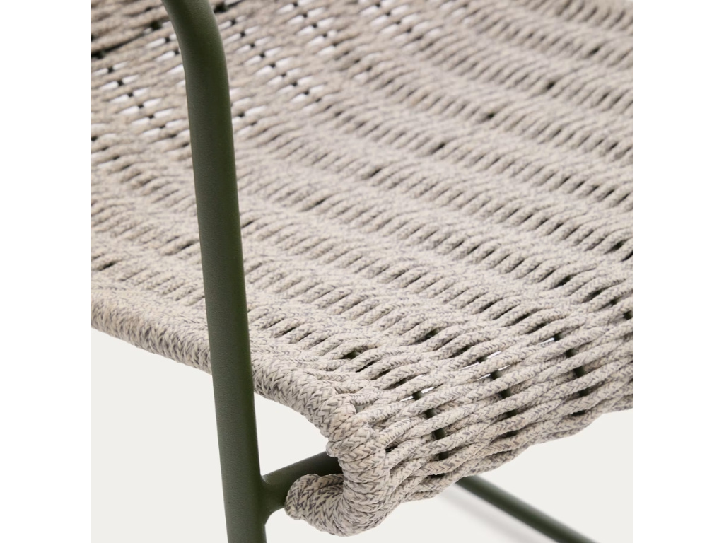 Světle šedá zahradní jídelní židle Kave Home Maurina spojuje moderní estetiku s řemeslnou precizností. Ručně tkaný sedák z odolného provazu přináší komfort i vizuální lehkost, zatímco pozinkovaná ocelová konstrukce zajišťuje vysokou odolnost proti korozi. Díky stohovatelnosti je ideální volbou pro flexibilní venkovní uspořádání, kde záleží na efektivním využití prostoru. Vaši zahradu či terasu můžete dokonale sladit spolu s dalšími designovkami z této kolekce – nabízí zahradní křesla, podnožky, jídelní židle i stoly.